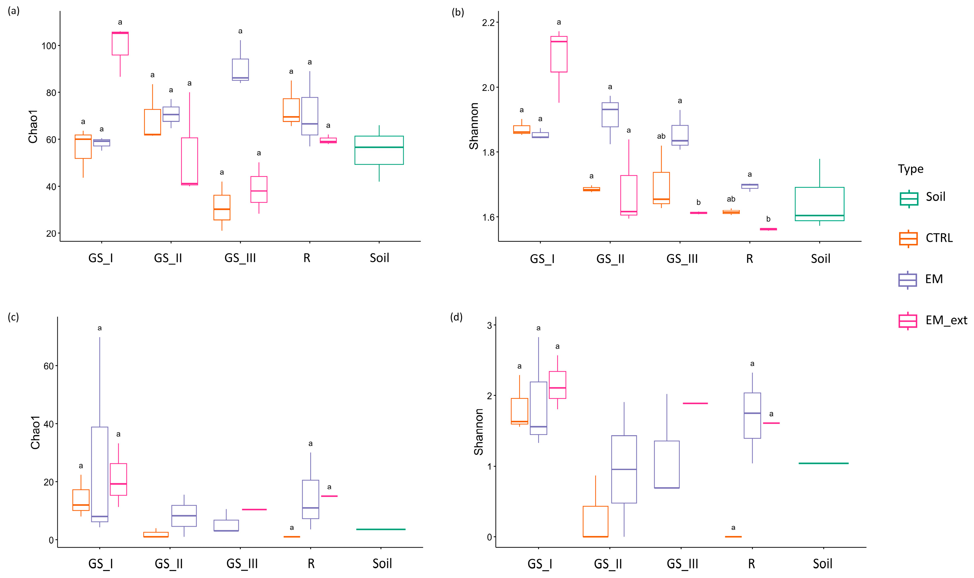 4.3. Impact of EM Treatments on Soil Microbiota Structure