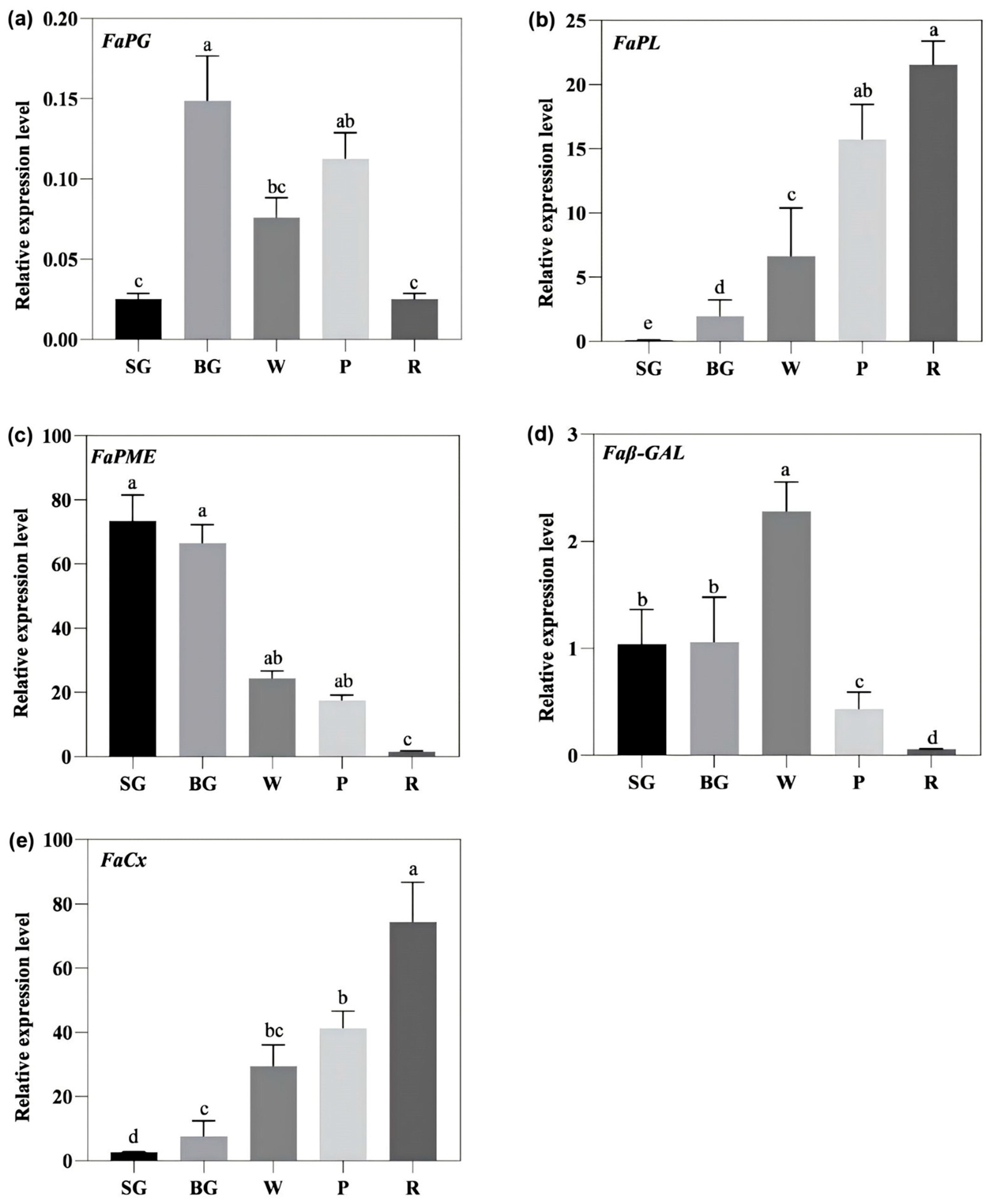 3.3. Changes in the Activities of Cell Wall Metabolizing Enzymes During Strawberry Ripening