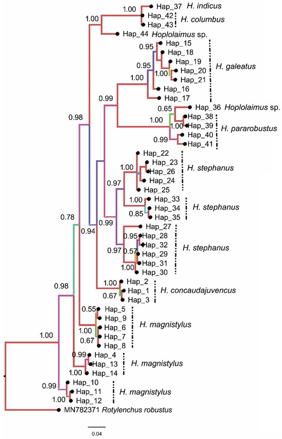 Chicago/Turabian StyleShokoohi, Ebrahim, and Peter Masoko. 2025. "Genetic and Haplotype Diversity of Hoplolaimus (Nematoda: Hoplolaimidae) Through Analysis of COI of mtDNA" Horticulturae 11, no. 2: 113. https://doi.org/10.3390/horticulturae11020113