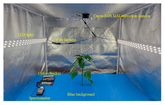 To achieve reliable RGB image acquisition, uniform lighting, minimization of shadows and reflections, and color temperature and brightness adjustment are required. In this study, a preliminary test was conducted to obtain uniform RGB data of red peppers, and the light box was equipped with a blue background effective for RGB imaging.