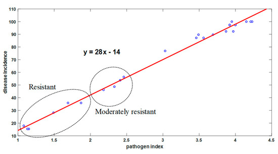 where is the average of ELISA, is the average of the pathogen index, is the average of the disease incidence.