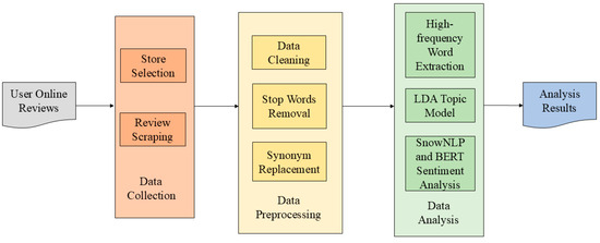 The relationship between products and e-commerce is multifaceted and can be explained from various perspectives. Firstly, sales channels: e-commerce platforms have emerged as crucial sales channels, offering a solution to the geographical and temporal constraints faced by traditional brick-and-mortar stores [5]. They enable products to reach and be accessible to a broader consumer base. Next, there is product display and promotion: these platforms provide a virtual space for merchants to exhibit and promote their offerings. By employing images, detailed descriptions, and videos, merchants can effectively highlight the unique features and benefits of their products, thereby capturing consumer interest and stimulating purchases [6]. Thirdly, transactions and payments: e-commerce platforms facilitate secure and user-friendly transaction processes. They simplify the act of purchasing for consumers, who can select products, choose payment options, and receive prompt and secure delivery services. Finally, reviews and feedback: products on e-commerce platforms are often accompanied by consumer reviews and feedback. After making a purchase, consumers can review the products, sharing their usage experiences and opinions [7]. These reviews and feedback serve as valuable references for other consumers, aiding them in making informed purchasing decisions [8,9].User online reviews are a visual representation of the customer’s voice, and through the study of user online reviews, can better assist merchants in improving customer satisfaction. Currently, some researchers have studied and analyzed the user online ratings, using digital forms to intuitively and clearly display the degree of customer satisfaction with the store and the product [10,11]. However, ratings alone cannot fully respond to the store’s strengths and weaknesses. Online reviews, which are open-ended feedback written by users after using the goods, can provide a comprehensive response to their ideas for the merchant and other users to consider. Therefore, this paper will take the online reviews of Honey Tangerine E-commerce as the source of information, carrying out data analysis and processing.
