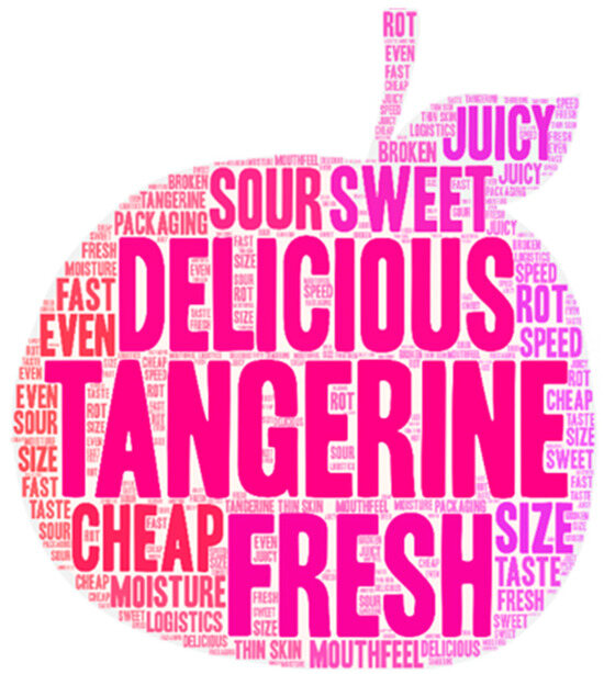 Due to the convenience of shopping online and the availability of more affordable goods, an increasing number of merchants have joined e-commerce platforms. To expand their market reach, many agricultural products including those with regional characteristics have been transferred online [1]. Among these, mandarin tangerines, a popular fruit produced in Taizhou City, Zhejiang Province, China, are marketed globally through e-commerce annually. Since customers cannot physically inspect the items before purchasing, they largely depend on e-commerce review sections to guide their decision-making [2,3]. Consequently, it is essential to develop a rating system for mandarin tangerines by meticulously scrutinizing and evaluating the comments on e-commerce platforms. Such a system would assist merchants in delivering products that align with customer expectations [4]. Therefore, to enhance the provision of satisfactory products, we aimed to establish a comprehensive review system for tangerines through the analysis of e-commerce reviews. Today’s e-commerce platforms facilitate interaction and transactions between consumers and merchants, fostering a close connection between products and online commerce. These platforms enable merchants to display and sell a diverse array of products, while consumers can conveniently browse and make purchases through the platform. By refining our understanding of consumer feedback, we can assist businesses in better meeting the evolving demands of their clientele.