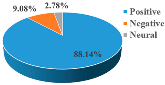 In this section, the SnowNLP sentiment analyzer was utilized in Python to calculate the sentiment scores for the extracted comments [24]. This tool utilizes an ontology library of Chinese emotional vocabulary, a valuable resource compiled and annotated by the teaching and research team under the guidance of Professor Lin Hongfei at the Information Retrieval Laboratory, Dalian University of Technology. This ontology provides a multifaceted description of Chinese words or phrases, encompassing parts of speech, emotional category, emotional intensity, and polarity. Detailed emotion Chinese–English words can be found in Supplementary Materials Table S2.