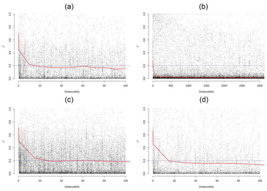 - Zhang, C.; Dong, S.S.; Xu, J.Y.; He, W.M.; Yang, T.L. PopLDdecay: A fast and effective tool for linkage disequilibrium decay analysis based on variant call format files. Bioinformatics 2019, 35, 1786–1788. [Google Scholar] [CrossRef]