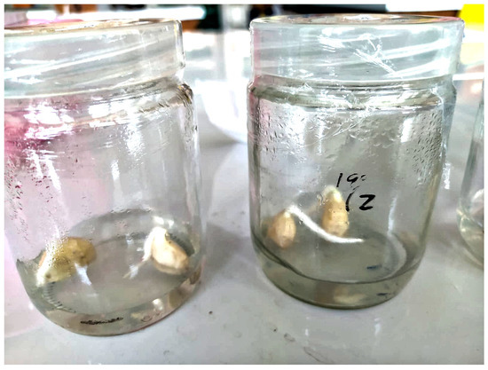Environmental conditions play a critical role in the germination and growth of sacha inchi seeds. Temperature was maintained within a range of 22–28 °C, with variations to mimic natural diurnal cycles, as seen in one protocol with 24 °C during the day and 22 °C at night. These conditions achieved 100% germination rates, indicating their effectiveness [50,52]. Light regimes also varied, with some protocols employing a photoperiod of 12–16 h at moderate light intensities (40–52 μmol m−2 s−1), which is sufficient for photosynthetic activity during seedling development [6,52,54]. Other protocols used complete darkness during the initial stages of germination to enhance radicle emergence, as light during this phase could inhibit early root development (Figure 4) [6,51]. High humidity levels, such as 70% relative humidity, were particularly beneficial for preventing desiccation and ensuring consistent water availability, as evidenced by one protocol that achieved a 70% germination rate under these conditions [54].