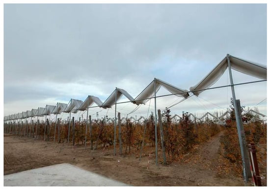 - Domanda, C.; Blanco, I.; Buccolieri, R.; Rustioni, L. Anti-Hail Nets in Viticulture: Do They Affect White Grape Quality in the Mediterranean Region? Agriculture 2024, 14, 1438. [Google Scholar] [CrossRef]