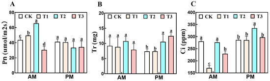 2.3. Determination of Photosynthetic Rate (Pn), Transpiration Rate (Tr) and Intercellular CO2 Concentration (Ci)
