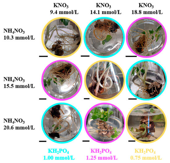 - Lukatkin, A.; Mokshin, E.; Bolshakova, E.; Da Silva, J. Effects of inorganic salts concentration and alternative plant growth regulators on the in vitro organogenesis of a new hybrid Cymbidium. BTA 2019, 100, 279–288. [Google Scholar] [CrossRef]