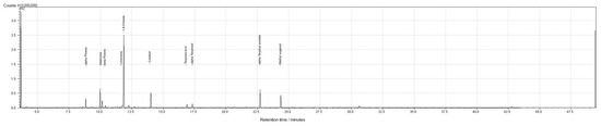 The identity of the volatile compounds was determined based on the retention time (RT) of the components and from the GC-MS spectra and retention indices (RIs) obtained in relation to the C8–C20 n-alkanes. AMDIS software version 2.62 was used to process the GC-MS data using NIST library version 2.0 (both programs were developed by the National Institute of Standards and Technology, U.S. Department of Commerce, Gaithersburg, MD, USA). The obtained retention indices and spectra were compared with the literature [21,22,43].