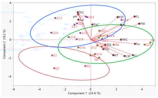63. Iezzoni, A.F.; Pritts, M.P. Applications of principal component analysis to horticultural research. HortScience 1991, 26, 334–338. [Google Scholar] [CrossRef]