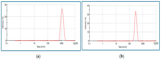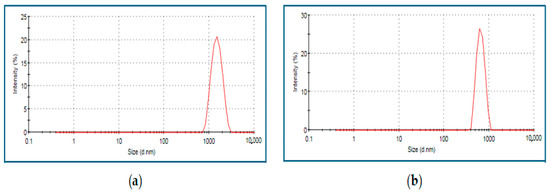 A Zeta Sizer (Malvern, Nano ZS90, Software version 7.11, UK) was used to determine the size and surface charge distribution of the particles. The “dynamic light scattering” (DLS) technique was used to calculate the average size of the particles. An amount of 500 μL of microparticle solution was drawn directly from the medium, loaded into a disposable cuvette model ZEN0040 (PN ZEN0040), and placed in the device. The average Zavg sizes of the particles were 477.3 ± 1.4 nm for chitosan and 583.3 ± 2.6 nm for selenium (Figure 1 and Figure 2).