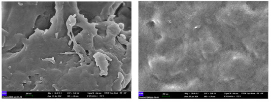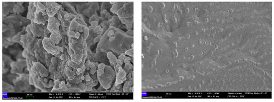 30,000× SEM images of sample (chitosan on the left, size modified chitosan on the right).