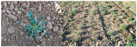 Recent research has focused on highlighting the importance of suggesting alternative/complementary crops that can withstand adverse environmental conditions, especially in arid and semi-arid regions that are mostly affected by climate adversities and drought in particular, as well as to reveal the mechanisms involved in this adaptation [24,25]. In this context, the commercialization of wild edible species as high-added-value substitutes of conventional crops could be a key pillar of a sustainable strategy aiming to mitigate the severe impact of climate change on food security [26,27,28,29], as well as in the diversification of food systems [30,31,32]. Moreover, Polyzos et al. [33] found that deficit irrigation could be used as a sustainable tool to manage irrigation water in Scolymus hispanicus cultivation without compromising crop yield and the bioactive profile of the edible portion of plants. However, it should be noted that this irrigation technique (e.g., deficit irrigation) should be tailored to each species, since a varied response has been recorded and various mechanisms of adaptation and tolerance have been reported in the literature [22,29,34].