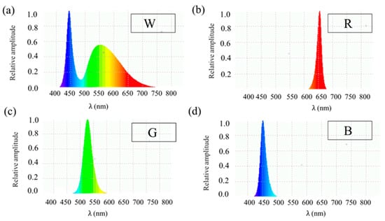 - Trumpler, K.; Wu, B.; Addo, P.W.; MacPherson, S.; Lefsrud, M. Plant growth optimization using amber light supplemented with different blue light spectra. Horticulturae 2024, 10, 1097. [Google Scholar] [CrossRef]