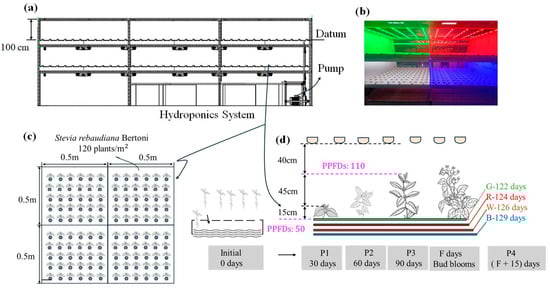 - Rengasamy, N.; Othman, R.Y.; Che, H.S.; Harikrishna, J.A. Beyond the PAR spectra: Impact of light quality on the germination, flowering, and metabolite content of Stevia rebaudiana (Bertoni). J. Sci. Food Agric. 2022, 102, 299–311. [Google Scholar] [CrossRef] [PubMed]