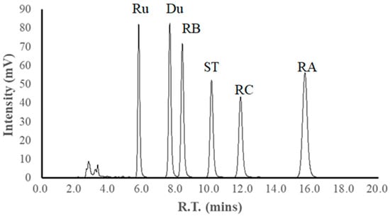 - HRu, HDu, HRB, HST, HRC, and HRA represent the content of Ru, Du, RB, ST, RC, and RA in the lyophilized extract, respectively.