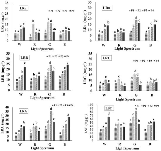 3.2. Effects of Different Light Qualities and Growth Stages on Stevia Extraction Yield
