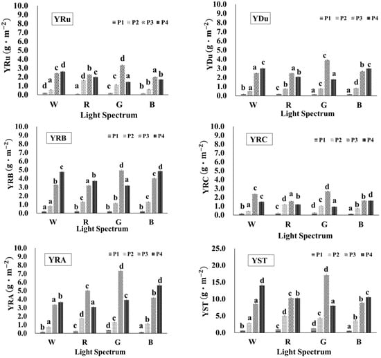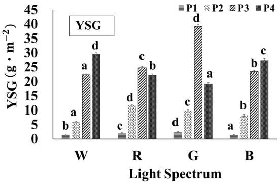 3.4. Effects of Different Light Qualities on the Yield of SG