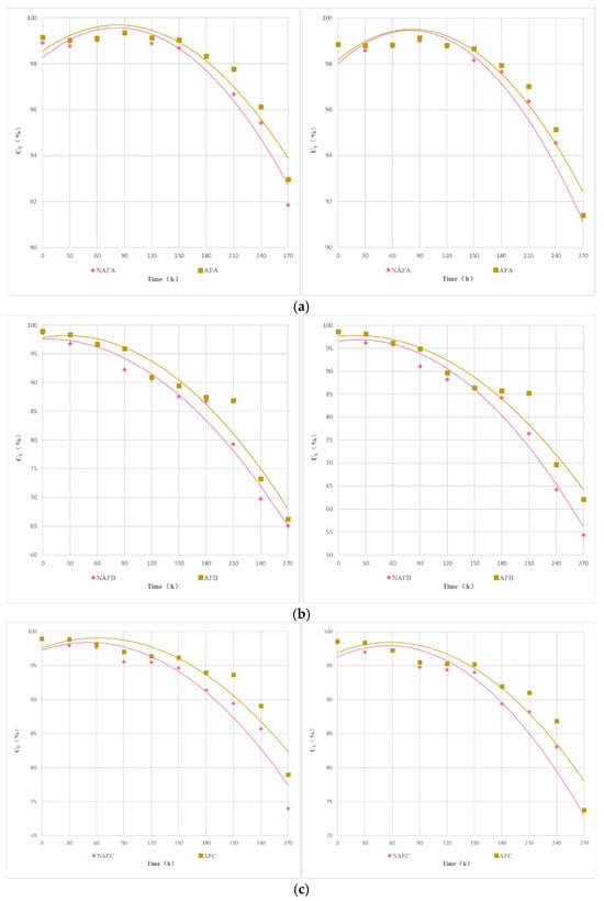In the regression analysis, the coefficient of determination, R2, for each experimental group is greater than 0.7, indicating that the regression equations have a good fit to the data.