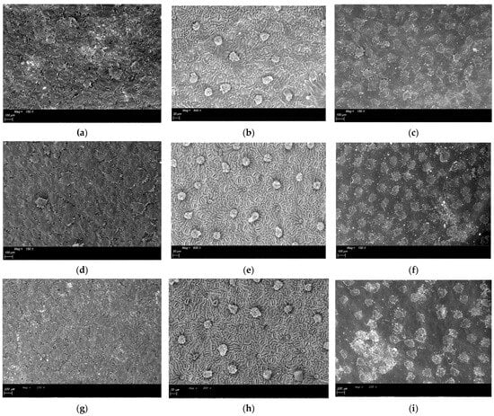 Abaxial surfaces of leaves treated with different geomaterial, collected before the first application, were characterized by the same number and size of stomata (area and max diameters), as shown in Table 2 and Figure 2. At the end of cycle applications (beginning of fruit colouring stage—N.81) NZ leaves exhibited higher stomatal density characterized by bigger stomata (max diameter and area) compared to K and T leaves (Table 2Figure 3).