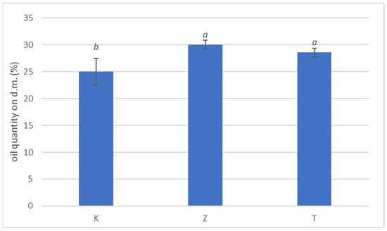 Acidity values expressed in %, peroxide values in mEq O2/kg and total phenolic content in mg/g. Different letters (a, b) indicate significant differences according to ANOVA and Tukey HSD test (p < 0.05) at each application date.