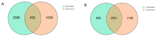 DEGs Venn map. (A) DEGs in the flesh. (B) DEGs in the pericarp.