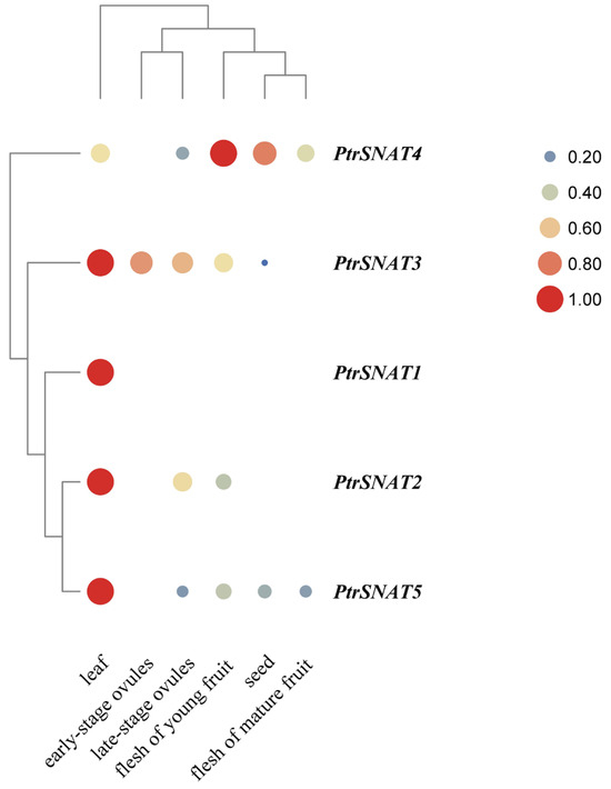3.5. Expression Analysis of PtrSNAT Genes in Different Tissues