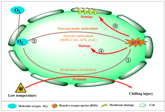 Mechanism of ROS causing chilling injury in fruits and vegetables under low-temperature stress.