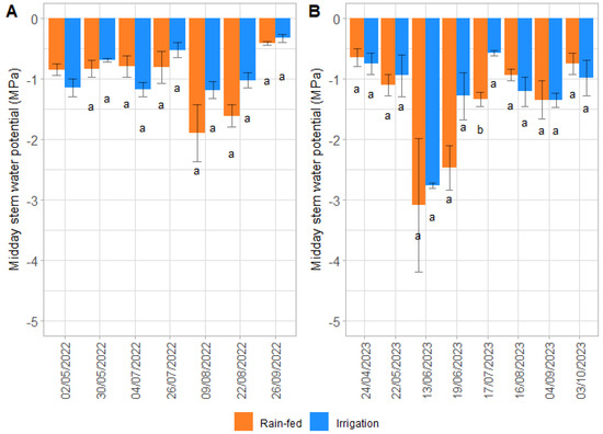 3.2. Effect of Irrigation on Midday Stem Water Potential