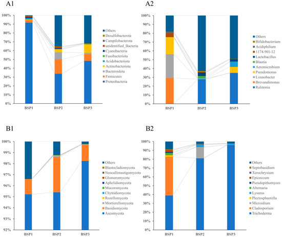 | phylum | Proteobacteria | 91.5677 ± 1.3918 | 33.7688 ± 23.119 | 48.2581 ± 15.2248 | phylum | Ascomycota | 95.2163 ± 1.4971 | 95.399 ± 2.5043 | 98.2342 ± 1.2558 |
