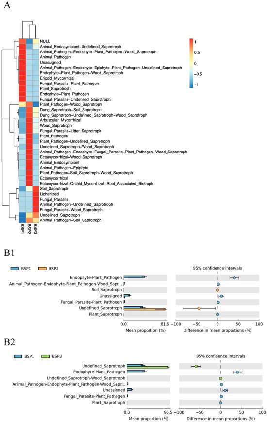 | Fungi Species | BSP1 vs. BSP2 | BSP1 vs. BSP3 | BSP2 vs. BSP3 | ||||||