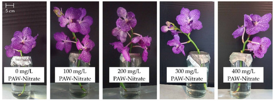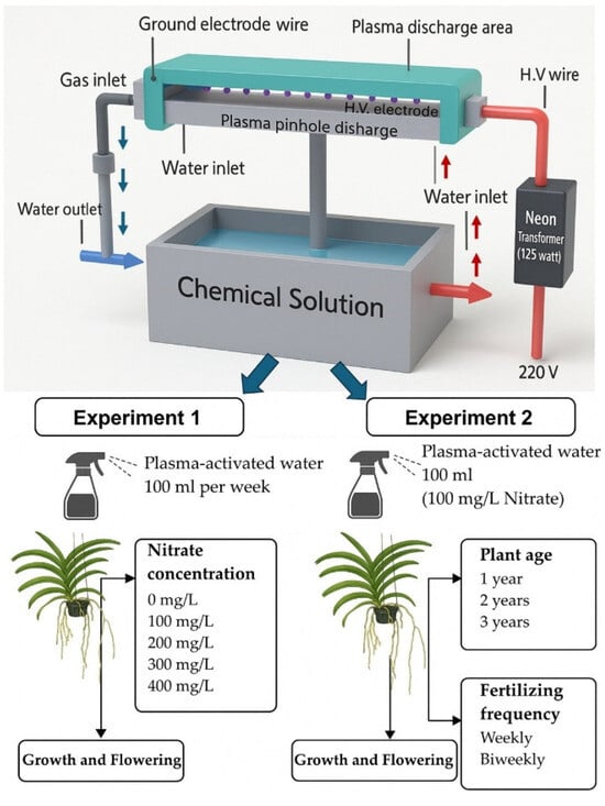 Inkham, C.; Salisu Jibia, S.; Jaipinta, S.; Ruamrungsri, S.; Panjama, K. Effects of Utilizing Plasma-Activated Water as a Nitrate Source on Growth and Flowering of Vanda Orchids. Horticulturae 2025, 11, 491. https://doi.org/10.3390/horticulturae11050491