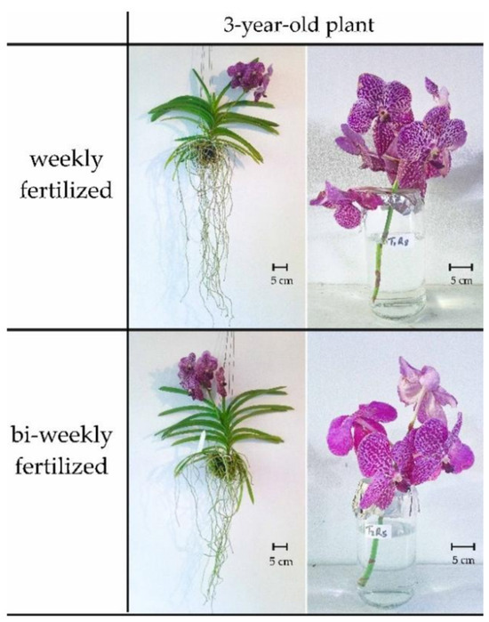 - Wang, Y.-T. Effects of six fertilizers on vegetative growth and flowering of Phalaenopsis orchids. Sci. Hortic. 1996, 65, 191–197. [Google Scholar] [CrossRef]