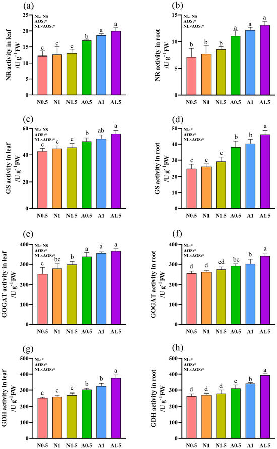 3.4. Effects of AOS and Different Nutrient Solution Levels on the N Metabolism Enzymes Activities in Cucumber Seedlings Under Suboptimal Temperatures