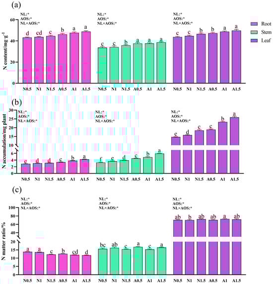 3.5. Effects of AOS and Different Nutrient Solution Levels on N Content, Accumulation, and Distribution in Different Cucumber Organs Under Suboptimal Temperatures