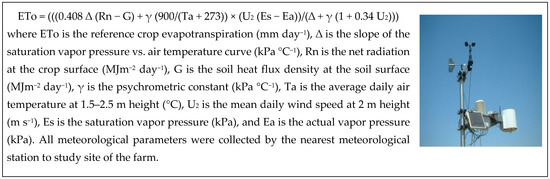 Equation (1) was used to compute the daily irrigation water and the seasonal irrigation water for 2021 and 2022 [42]: