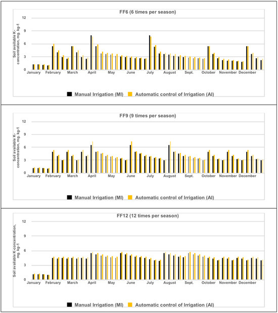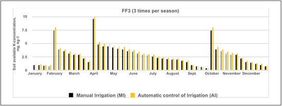 Effect of automatic control of irrigation and fertilization frequencies on the K concentration in soil.