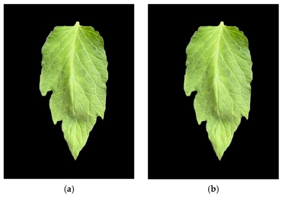 The experiment was conducted in 2024 at the cucumber science and technology yard in Juye, Shandong Province. The tested tomato variety was “Shuang fei 8.” Thid study focuses on tomato leaves at the flowering stage (leaf age 22–28 days), a critical phase in tomato growth and development. During this period, the physiological state of the leaves and the measurement conditions are optimal, making it an ideal time for chlorophyll content determination. The flowering stage is typically associated with high photosynthetic efficiency, and previous studies [38] have shown a significant correlation between leaf physiological status and fruit set rate. In contrast, younger leaves (around 15 days old) may not be fully developed, while older leaves (over 40 days old) often exhibit varying degrees of chlorophyll degradation. In the experimental design, a random sampling method was employed: from 114 tomato plants at the flowering stage, one healthy leaf with uniform color and no visible pests or diseases was selected from each plant as a sample. All samples were collected using non-destructive methods to ensure that the normal growth and development of the plants were not affected. To ensure the reliability of the experimental materials, the selected leaves should have a consistent color distribution across the entire area, with minimal color variation. There should be no spots, shadows, yellowing areas, or color gradients present. Data collection included measuring the chlorophyll content (SPAD value) of tomato leaves and capturing images of the leaves. The images were taken immediately after measuring the SPAD value to ensure each leaf image corresponded precisely to its SPAD value.