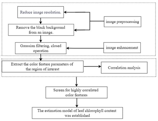 The combination of digital image processing technology and visible light devices enables the fast and non-destructive segmentation of leaf images. By utilizing the red, green, and blue (RGB) channels, different color models are used to quantify the color information in digital images [20], allowing for the rapid, non-destructive detection of chlorophyll content in crops. Related studies have shown that changes in chlorophyll content and other pigments within plants lead to alterations in the color of crop leaves. Therefore, by combining digital image processing technology to extract color features highly correlated with chlorophyll content, rapid and non-destructive detection of chlorophyll content in crops can be achieved [21].