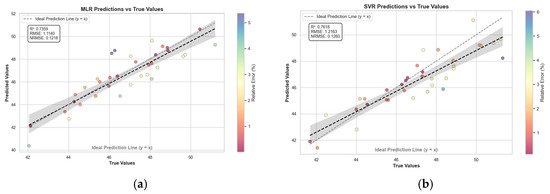 The superior performance of the Stacking model primarily stems from its ability to integrate the predictive capabilities of multiple base learners and leverage a meta-learner to refine their outputs. The random forest (RF) model excels in handling nonlinear relationships by constructing multiple decision trees and aggregating their results through voting or averaging, effectively capturing complex patterns and nonlinear features within the data. Support vector regression (SVR) performs more stably on small sample datasets, optimizing the prediction boundary by maximizing the margin, which helps mitigate overfitting in limited data scenarios. Meanwhile, multiple linear regression (MLR) is more efficient in handling simple linear relationships, providing quick and accurate linear predictions.