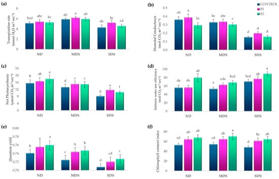 | Biostimulant (B) | 2 | 25.383 ns | 0.079 ns | 1.062 ns | 0.929 ns | 1.792 ** | 0.021 ** | 42.175 *** | 2623.597 *** | 0.003 *** | 1795.123 *** |