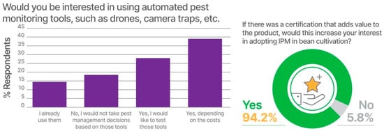 Finally, almost 40% of the respondents said they would be interested in adopting automated pest monitoring tools, depending on the costs (Figure 12). In contrast, almost 100% of the respondents said they would be willing to adopt IPM if there was a certification that added value to products obtained with low insecticide use. This raises another relevant strategy to increase the adoption of IPM and other sustainable techniques.