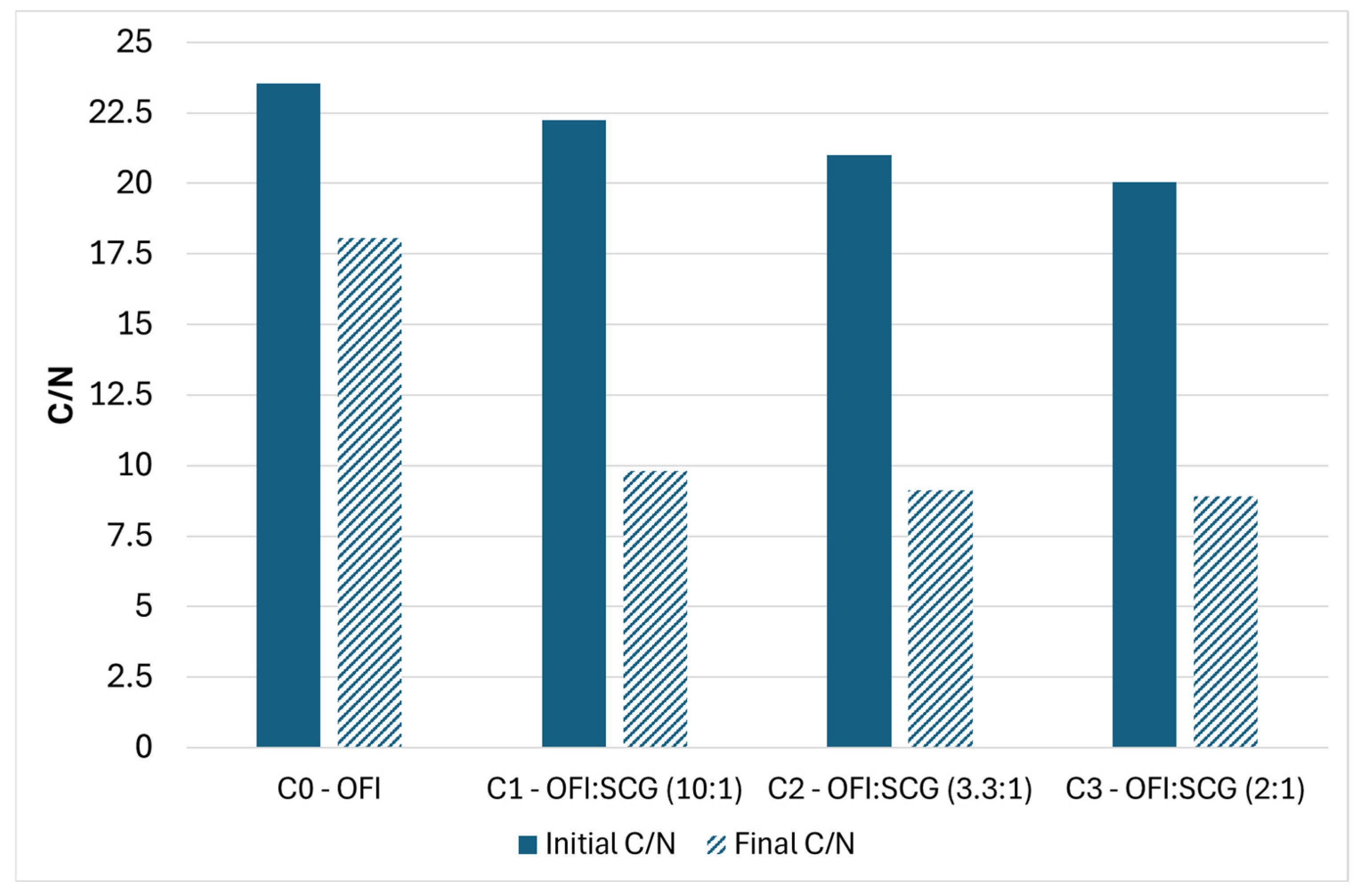 | C2 | Mixture composted with OFI–SCG 3.3:1 |