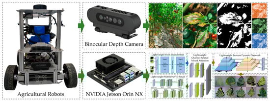 To simulate field conditions, data were collected using an RGB camera (1920 × 1080 resolution, 30 FPS). Input images were resized to 224 × 224 with 3 channels before processing. Detailed configurations are summarized in Table 1, and the embedded deployment setup is illustrated in Figure 9.