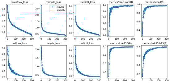 During model optimization, this study selected AdamW as the primary optimizer to facilitate rapid convergence tailored to the lightweight model’s requirements. To enhance parameter update efficiency and stability, a weight decay coefficient of 5 × 10−2 was set, mitigating overfitting risks and improving the model’s generalization across diverse field scenarios. A dynamic learning rate scheduling strategy was employed, with an initial learning rate of 1 × 10−4, gradually reduced to 1 × 10−6 via a cosine annealing mechanism, balancing rapid learning in early training stages with stable convergence in later phases. These settings enable the selection of an optimal model within a limited number of iterations.