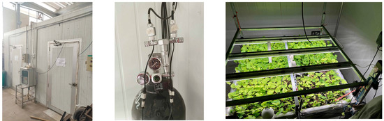 The study was conducted in custom-built sealed chambers (2 × 2 m) constructed with ISO wall panels to ensure standardized insulation properties and minimize environmental fluctuations. Plants were cultivated on elevated tables 80 cm above the floor, with dimensions of 1 × 1 m to eliminate potential confounding effects from vertical CO2 stratification.