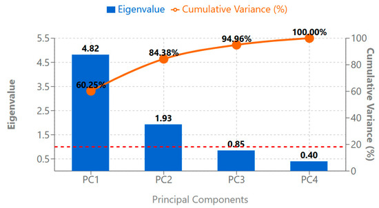 For multivariate analysis, data preprocessing included standardization using Z-score transformation (Z = (X − μ)/σ) to ensure consistent scaling across variables. Principal Component Analysis (PCA) was employed to explore relationships among chemical constituents under different CO2 conditions, with components selected using Kaiser’s criterion. Prior to analysis, sampling adequacy was confirmed through Kaiser–Meyer–Olkin and Bartlett’s tests.