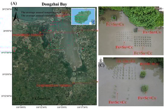 - Wang, W.; Xin, K.; Chen, Y.; Chen, Y.; Jiang, Z.; Sheng, N.; Liao, B.; Xiong, Y. Spatio-Temporal Variation of Water Salinity in Mangroves Revealed by Continuous Monitoring and Its Relationship to Floristic Diversity. Plant Divers. 2024, 46, 134–143. [Google Scholar] [CrossRef]