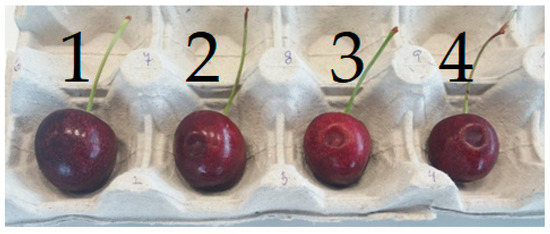 - Param, N.; Zoffoli, J. Genotypic differences in sweet cherries are associated with the susceptibility to mechanical damage. Sci. Hortic. 2016, 211, 410–419. [Google Scholar] [CrossRef]
